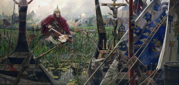 На Куликовом поле перед началом битвы русские испытывали страх. Опыт выступлений против монголо-татар был горьким. Еще немного — и войско князя Димитрия готово было спасаться бегством. В этот критический момент ответить на вызов Челубея решился Пересвет. Его поступок был лишен мстительности, азарта самоутверждения. Таково было духовное предвидение возможности русским не уступать в мужестве противнику, необходимости ценою своей жизни выполнить долг, который никто другой не брался выполнить.
