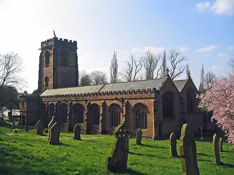 There is also a church in the village of Harpswell in Lincolnshire (built in 1042; one of the few English churches to preserve a Saxon tower. It also has medieval glass, ornate oak pews and a Norman font); a parish church of St. Chad in the Early English style and an Anglican primary school in Dunholme in Lincolnshire; in the village of Welbourn in Lincolnshire (the church is Norman; people believed if they hung a carving of a sore body part on its south door then the ailment would be cured); a very ancient church in the old isolated village of Church Wilne in Draycott parish in Derbyshire (the saint preached and had a holy well nearby; a local reservoir is named after him); churches in the villages of Stockton (with a fifteenth-century tower), Montford and Boningale (from the twelfth century; it has a portion of a medieval cross at churchyard) in the charming Shropshire countryside; parish churches in the following Staffordshire locations—Hopwas, Burton-on-Trent (one of numerous churches of this town), Freehay, Bagnall, Longsdon, Pattingham (from the early thirteenth century; it stands on the site of a Saxon church and its churchyard has an early English cross shaft), Slindon and the town of Stafford (this extremely interesting twelfth-century church has over 100 carved figures; it was restored in the nineteenth century by George Gilbert Scott) and many others. A large number of St. Chad’s churches across Midlands are concentrated in peaceful rural locations, reminding us of and drawing us closer to the spirit of this holy man.