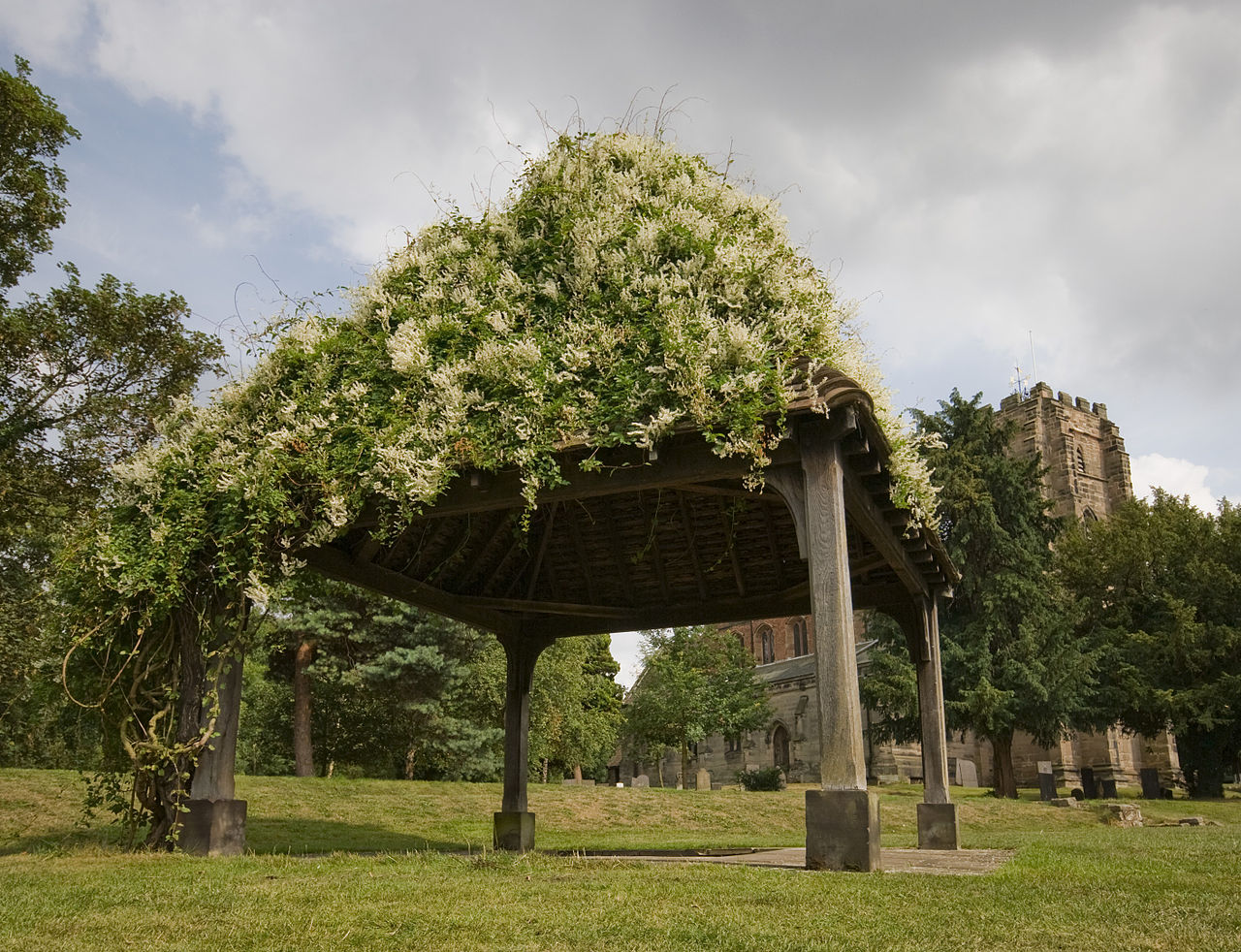 On the northeast of Lichfield, on St. Chad’s Road, stands the very ancient St. Chad’s parish church. It was here that the saint lived in his hut, baptized and prayed. The present church was built on the site of his small monastery in the twelfth century. A statue to its patron was erected on its south porch in the twentieth century. The holy well, the waters of which were used by the saint, survives within the graveyard of this church. It is still a popular pilgrimage destination for Christians of different traditions; the well is annually decorated in a ceremony known as “well-dressing”. A stone well house was built by the well in the 1830s when the pilgrimages resumed; it was demolished in the 1950s and replaced by a simple wooden structure.