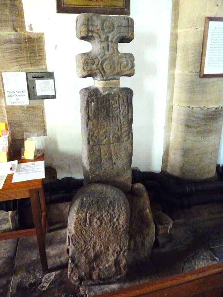 Some parish churches are dedicated to St. Chad on the territory of his former first Diocese of Northumbria: the charming church in the village of Middlesmoor in North Yorkshire, also known as “the church in the dale,” in a very picturesque setting (there is an early inscribed preaching stone, “St. Ceadda’s cross,” inside the church, thought to have been erected there by the saint himself, along with a Saxon font); churches in Saddleworth and Rochdale in Greater Manchester (legends associated with these churches abound); in the hamlet of Sproxton in North Yorkshire (built under Elizabeth I) and so on.