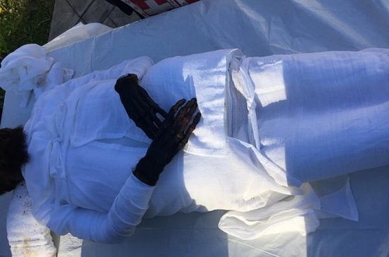 После удаления пыли с тела, святые мощи промыли теплой водой и белым вином, а также обработали маслом.
