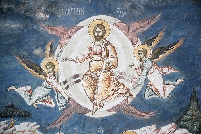 Но все равно может показаться, что Вознесение – грустный праздник. Если до этого дня в храмах можно было каждый день услышать радостные пасхальные песнопения – «Христос воскресе из мертвых, смертию смерть поправ и сущим во гробех живот даровав», то теперь нам придется ждать целый год, до следующей Пасхи. Но наша радость не должна уменьшаться. Да и само Священное Писание и церковные песнопения говорят о том, что Вознесение стало для учеников Христа (а значит, должно стать и для всех нас) – днем радости. Например, мы читаем в Евангелии от Луки, что Иисус вывел учеников из Иерусалима к Вифании, а затем: подняв руки Свои, благословил их. И, когда благословлял их, стал отдаляться от них и возноситься на небо. Они поклонились Ему и возвратились в Иерусалим с великою радостью. И пребывали всегда в храме, прославляя и благословляя Бога (Лк. 24, 50-53). Или в одном из главных песнопений праздника – тропаре – мы услышим: «Вознеслся еси во славе, Христе Боже наш, радость сотворивый учеником обетованием Святаго Духа, извещенным им бывшим благословением, яко Ты еси Сын Божий, Избавитель мира» (в русском переводе: «Вознесся Ты во славе, Христе Боже наш, радости исполнив учеников обещанием Святого Духа, по утверждении их благословением в том, что Ты – Сын Божий, Искупитель мира»).