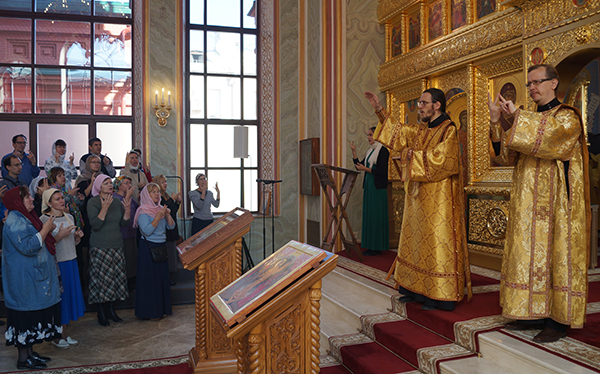 В год столетия революции в России богослужение в Князь-Владимирском храме Московском епархиальном доме особенно значимо и символично, сказал также епископ Пантелеимон. «В 2017 году мы вспоминаем трагедию, которая случилась в нашей стране 100 лет назад. Но в этот же год совершилось великое событие, которое по своему значению превосходит эту страшную трагедию: сто лет назад в этом зале совершилось избрание святителя Тихона, Патриарха Московского и всея России, на Патриарший престол, — напомнил архипастырь. — Само избрание — жребий — выпал ему в Храме Христа Спасителя, но именно здесь он председательствовал на заседании Поместного Собора Русской Церкви, здесь он был избран одним из кандидатов на Патриаршество. Почти все участники этого Собора были в тюрьмах, в заключении, в ссылках, многие были убиты. Более 40 членов Собора причислены к лику святых». Их молитвами Церковь сегодня свободна и продолжает то дело, которое совершали они, отметил викарий Святейшего Патриарха. Многие решения, которые были приняты Поместным Собором 1917-1918 годов и не могли быть реализованы в годы гонений, реализуются сейчас, добавил епископ Пантелеимон.