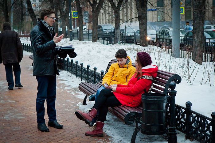Чуть более года назад Миссионерское братство во имя преподобного Германа Аляскинского поставило перед собой цель – по возможности каждое воскресенье нести слово Божие незнакомым людям на улице. В современной православной действительности это называется «уличной миссией», с точки зрения Нового Завета –проповедь тем, кому по каким-то причинам непонятно или неведомо Святое Благовестие.