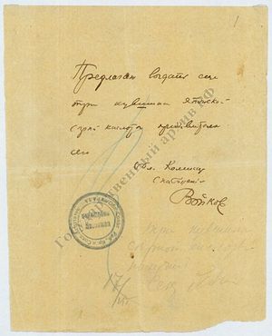 Записка коменданта дома Ипатьева Я.М. Юровского о расстреле царской семьи и о попытках спрятать трупы (с пометами, сделанными М.Н. Покровским По «Записке Юровского» сейчас проводится новая комплексная экспертиза, в том числе почерковедческая и автороведческая