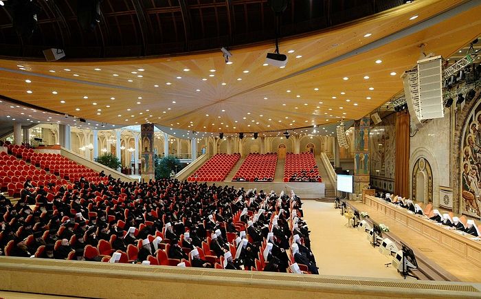 Единеми усты и единем сердцем славяще Небесного Отца и Господа нашего Иисуса Христа, мы, члены Освященного Собора, свидетельствуем о том, что молитвенным предстательством перед Престолом Вседержителя новомучеников и исповедников Церкви Русской, трудами множества архиереев, клириков, монашествующих и мирян дело церковного строительства продолжает развиваться. Восстанавливаются порушенные святыни, созидаются новые храмы, совершают иноческий подвиг многочисленные насельники православных обителей, умножается количество церковных благотворительных начинаний, усиливается церковная работа по поддержке семьи, материнства и детства. Особую радость вызывают успехи в области работы с молодежью, в том числе развитие добровольчества в епархиях и на приходах, а также в приобщении детей к вере через воскресные школы и иные церковные образовательные проекты.