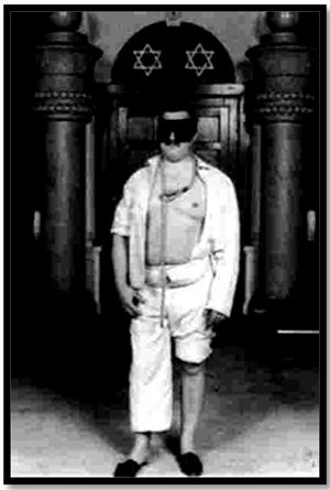 Изображение кандидата на вступление в масонство. Согласно масонским правилам, его заставляют оголить левую ногу и левую часть груди и надевают на шею петлю