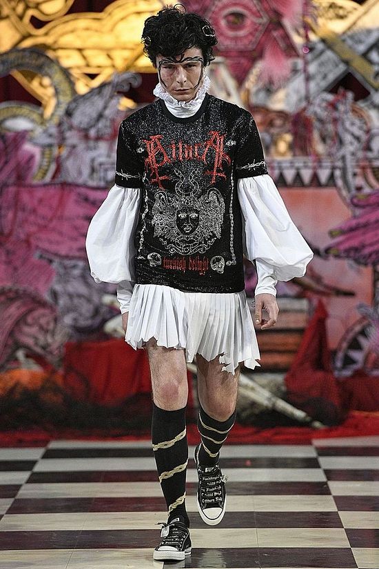 Выступавшие в этой подчеркнуто оккультной атмосфере модели были одеты и «украшены» множеством специфических символов. Не обошлось и без общей тенденции эпохи: гермафродитизм и размывание границ между полами.