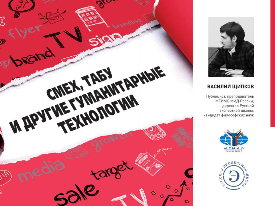 Автор книги подчеркнул, что техническая сфера информационных процессов опережает гуманитарную сферу. Последняя включает не только пиар-технологии и маркетинг в социальных сетях, которые также стремительно развиваются, поскольку тесно связаны с коммерческими интересами – продвижением брендов, товаров и услуг. В. Щипков отметил, что «есть и другая область гуманитарных технологий, связанная с формированием и продвижением смыслов, ценностей и идей, то есть формирующая современного человека». Автор книги рассказал, что в его книге повествуется о том, как с помощью смеха можно менять нормы морали, где существуют пределы самоконтроля у журналистов, что означает термины «мягкая сила» и «окно Овертона», как работают фабрики мысли, к чему ведет метафора войны, как строятся международные информационные кампании, и о многом другом.