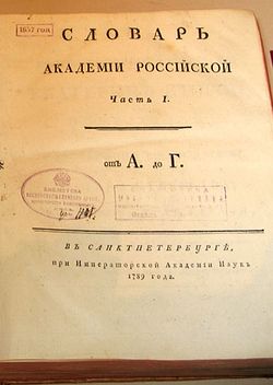 Но главным научным и культурным достижением академии, конечно же, следует считать издание толкового словаря русского языка. Первое издание, 1789–1794 годов, завершенное еще при Дашковой, насчитывало 43 тысячи слов. Второе, расширенное до 51 тысячи, закончилось лишь к 1822 году. Третье издание этой серии – «Общий церковно-славяно-российский словарь» (1834) – содержал уже 63 с лишним тысячи слов.