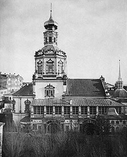 | Богоявленский мужской монастырь на Никольской ул. В нем находилась часовня вмч. Пантелеимона. Фото 1883 года. |