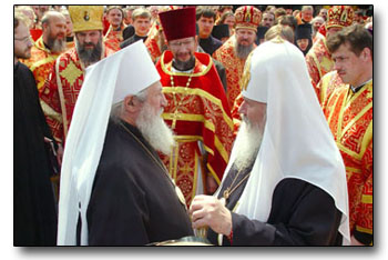 Святейший Патриарх и Высокопреосвященнейший Первоиерарх Русской Зарубежной Церкви подпишут Акт, за этим последуют взаимное приветствие и возглашение многолетия.