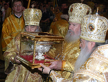 Святейший Патриарх Алексий возглавил Всенощное бдение в храме Христа Спасителя и встречу ковчега с честной главой Апостола и Евангелиста Луки