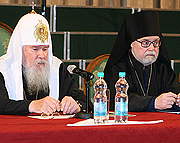 С докладом на заседании выступил ректор института архимандрит Иоанн (Экономцев). С приветствием к участникам торжественного акта обратился Святейший Патриарх Алексий.