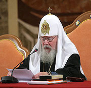 Особенно радостно нам отметить, что в минувшем году Господь исполнил одно из самых сокровенных наших чаяний — восстановление единства и канонического общения с Русской Церковью Заграницей. Посему мне весьма радостно приветствовать владыку митрополита Илариона — Первоиерарха Русской Православной Церкви Заграницей и Ее архипастырей, которые впервые после подписания в прошлом году Акта о каноническом общении примут участие в работе Архиерейского Собора Единой Поместной Церкви.