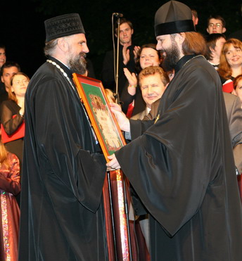 Обращаясь пришедшим на концерт духовной музыки жителям города Требинье и приветствуя российскую делегацию во главе с епископом Бронницким Амвросием и президентом Международного фонда единства православных народов В.А.Алексеевым Президент Райко Кузманович, в частности, отметил: