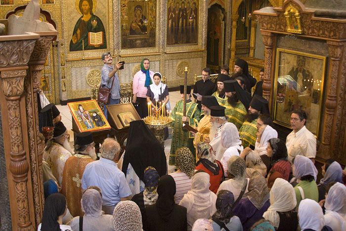 Вечером 17 июля, накануне празднования памяти прп. Сергия Радонежского, прмч. Елисаветы и основателя афонского монашества прп. Афанасия Афонского, в московский Сретенский монастырь группой паломников из Греции была передана икона преподобного Арсения Каппадокийского с частицей его святых мощей. Святыню, переданную настоятелем монастыря преподобного Арсения Каппадокийского архимандритом Феоклитом, встречали братия и прихожане Сретенской обители во главе с наместником архимандритом Тихоном. Икону сопровождали пятеро греческих священнослужителей и группа мирян из разных мест Греции.