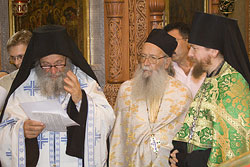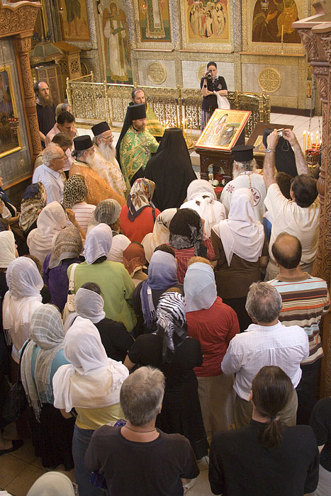 После обмена приветствиями и совместной молитвы святому гостям была устроена экскурсия по монастырю, предложен ужин, после которого состоялся показ фильма отца Тихона «Гибель империи».