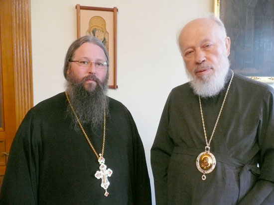 Блаженнейший Митрополит Киевский и всея Украины Владимир принял представителя Православной Церкви в Америке при Московском Патриархате архимандрита Закхея (Вуда) в своей рабочей резиденции в здании Киевской митрополии, что находится на территории Киево-Печерской Лавры.