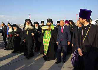 В аэропорте были подняты государственные флаги России, Греции и Евросоюза. Правительство Греции по достоинству оценило все усилия Русской и Элладской Православных Церквей.