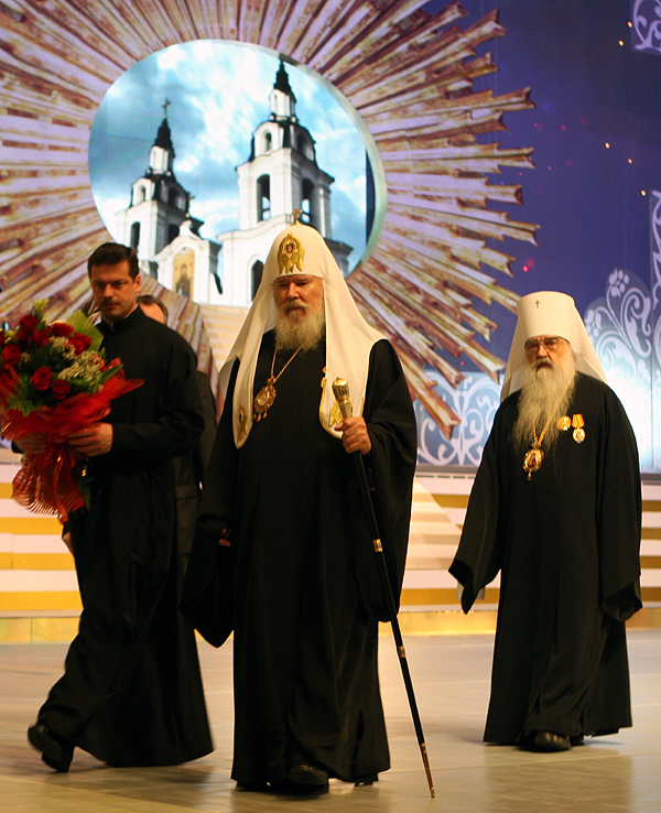 Перед началом концерта заместитель премьер-министра Республики Беларусь Александр Косинец огласил обращение Президента Республики участникам торжественного собрания. После чего с приветственным словом выступил Святейший Патриарх Алексий.