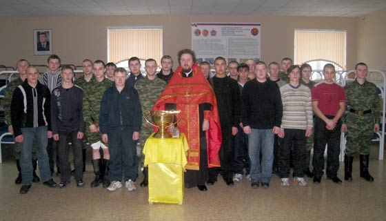19 ноября в казарме краевого призывного пункта Святое Крещения приняли 23 будущих воина, сообщает сайт Красноярской епархии. Несмотря на большой объем работы, краевой военкомат находит время для того, чтобы обратить внимание на духовное состояние новобранцев. По благословению Высокопреосвященнейшего Архиепископа Антония и по согласованию с главой военного комиссариата Красноярского края генерал-майором Юрием Серковым на протяжении всей призывной компании совершается Крещение будущих новобранцев.