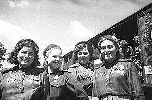 Сияющая девушка-летчица на крыле самолета. Веселый брадобрей с пулеметом за плечами, стригущий здоровенные усы своему боевому товарищу. Спящие солдаты, положившие винтовки под голову и минуту назад еще сидевшие, плотно прижавшись друг другу. В следующий момент их сразил уже сон и они, полусидя, не соблюдая равновесия, завалились друг на друга. Черпающие суп из котла походной кухни; пьющие пиво у «Гете Кафе» в Веймаре; сидящие на полу украшенного букетами акаций товарного вагона – офицеры, солдаты, медсестры.