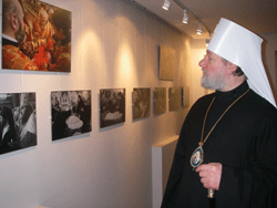 Перед открытием выставки в храме свт. Николая митрополит Христофор совершил молебен. Ему сослужили: викарий Московской Патриархии, епископ Бронницкий Феофилакт (Курьянов), настоятель храма протоиерей Алексий Ющенко, клирики Чешского подворья. По завершении молебна митрополит Христофор обратился к собравшимся, поздравив их с «великим событием в жизни Русской Православной Церкви» -- избранием нового Патриарха Московского и всея Руси. Иерарх упомянул о том, что ему довелось молиться вместе с Патриархом Кириллом в Богоявленском соборе в Москве 25 февраля, в день памяти святителя Алексия Московского, всея России чудотворца, и день тезоименитства почившего Патриарха Алексия. «Мы общались таким образом, который не забывается», - сказал Предстоятель Чешской Церкви о молитвенном общении с Святейшим Патриархом Кириллом.