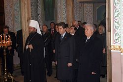В Свято-Георгиевской церкви обители высокие гости были встречаны Митрополитом Кишиневским и всея Молдовы Владимиром, которого сопровождали клирики и насельники монастыря. Митрополит Владимир совершил молебен о здравии. По завершении богослужения, Высокопреосвященнейший Владимир обратился к гостям с приветственным словом, в котором выразил сердечную благодарность Его Превосходительству Президенту Богларии г-ну Георгию Пырвану за те усилия, которые он прилагает для сохранения единства Православной Веры как на территории Болгарии, так и за ее пределами, в других православных странах.