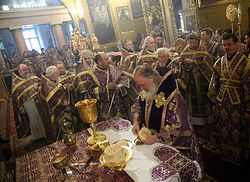 В Великий Четверг Святейший Патриарх Кирилл совершил Литургию в Богоявленском кафедральном соборе