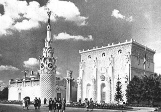 Главным архитектором ВСХВ стал Сергей Егорович Чернышев, который в это время был и главным архитектором Москвы, и одним из авторов генплана 1935 года. Он сохранил всю планировку и ансамбль, спроектированный Олтаржевским. Только самые скромные павильоны снесли и построили заново из металла и бетона, а остальные подверглись капитальной реконструкции ради создания монументального облика, и к работе снова привлекли авторитетных мастеров: Щуко, Гейльфрейха, Чечулина, скульпторов Коненкова и Мотовилова. Республиканские павильоны строились с применением природных материалов, характерных для каждой из республик (например для Армении – туфа), и по мотивам национальной архитектуры, переосмысленной в искусстве социализма: без чуждых по содержанию «национальных образов прошлого», но и без всяких космополитических тенденций. Так разоблачалась «пошлая клевета на социализм», якобы насильно стиравший национальные границы и отрицавший культурную самобытность народов, – объясняли пропагандисты. Кроме того, советская выставка противопоставлялась европейским, где архитекторы метрополий поверхностно, рекламно воплощали в павильонах внешние черты экзотической «туземной» архитектуры колоний.