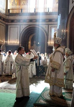 В праздник Преображения Господня Святейший Патриарх Кирилл совершил Божественную литургию в Храме Христа Спасителя