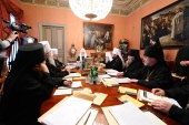 На заседании Священного Синода в рабочей Патриаршей резиденции в Чистом переулке Святейший Патриарх Московский и всея Руси Кирилл информировал членов Священного Синода о подготовке заседания Президиума Межсоборного присутствия и Архиерейского Совещания.