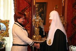 9 марта в рабочей Патриаршей резиденции в Чистом переулке Святейший Патриарх Московский и всея Руси Кирилл встретился с министром сельского хозяйства РФ Е.Б. Скрынник.
