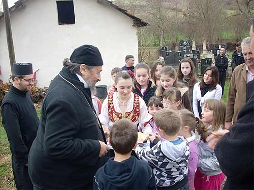 Владыка Афанасий в сопровождении духовенства посетил две поврежденные церкви – свт.Николая в селе Баньска (рядом с Вучитрном) и св.Иоанна Предтечи в селе Самодрежа (в 6 км от Вучитрна), где сейчас не осталось ни одного серба.