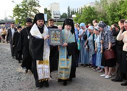 25 мая после Литургии был отслужен молебен, после которого святыню крестным ходом проводили до границы Сумской и Курской областей.