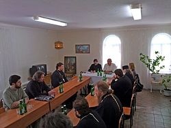 Затем священники встретились с председателем комиссии Общественной палаты КБР по вопросам толерантности, межэтническому и межконфессиональному согласию Заурби Нахушевым и секретарем комиссии Марией Котляровой. Темой заинтересованного разговора стала перспектива введения в школах предметов духовно-нравственного цикла.