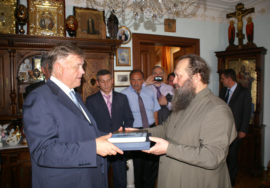 По завершении экскурсии, которую провел сотрудник паломнического отдела Лавры диакон Георгий, гости были приглашены в резиденцию наместника Свято-Успенской Киево-Печерской Лавры архиепископа Вышгородского Павла, с которым у Владимира Ивановича состоялась дружеская беседа. В память о посещении древней обители архиепископ Павел преподнес гостям памятные подарки.