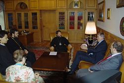 Владыка обратился к гостю со словами приветствия, отметив его многолетний опыт работы на дипломатическом поприще. Митрополит Иларион рассказал Г.Триверуа о положении Русской Православной Церкви в Бельгии, о приходах и монастырях Московского Патриархата, действующих в этой стране, о многолетних связях Русской Церкви с бенедектинским монастырем Амэ-Шеветонь. Председатель ОВЦС также сообщил послу Бельгии о взаимодействии Русской Православной Церкви с европейскими международными организациями, расположенными в Брюсселе.