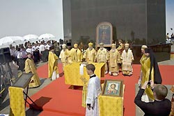 После возложения венка правящий архиерей Аргентинской и Южно-Американской епархии РПЦ митрополит Платон и первоиерарх Русской Православной церкви за границей (РПЦЗ) митрополит Восточно-Американский и Нью-Йорксий Иларион возглавили литию (краткое заупокойное богослужение) в Пантеоне у мемориальной доски русским героям. Своды Пантеона (он же храм Девы Марии) впервые огласило пение хора Московского Сретенского монастыря.
