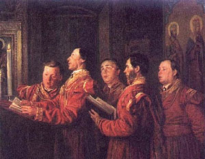 На известной картине В. Маковского «Придворные певчие» (1870), которая находится в Государственной Третьяковской галерее, изображены пять придворных певчих в красивых кафтанах (так называемых стихарях). Выражение лиц тружеников клироса одухотворённое, певчие всем телом и душой проникаются Богослужением, исполняя своё послушание. Уже даже сама одежда обязывала их к благочестивой жизни.