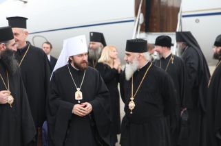 В аэропорту Тбилиси митрополита Илариона и его спутников встречали митрополиты Грузинской Православной Церкви: Некресский Сергий, Зугдидский и Цаишский Герасим, Боржомский и Бакурианский Серафим, Ахалцихский и Тао-Кларджетский Феодор, сотрудник Грузинской Патриархии протоиерей Георгий Харазашвили, а также клирик Русской Православной Церкви архимандрит Роман (Лукин), пастырски окормляющий русскоязычных верующих в Грузии.