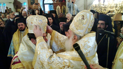 Блаженнейший Патриарх Феодор II возложил на нового митрополита Йоханнесбургского и Преторийского омофор, митру и вручил архипастырский жезл. Все собравшиеся многократно пропели: "Аксиос, аксиос, аксиос".