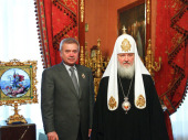 Святейший Владыка вручил В.Ю. Алекперову орден святого благоверного князя Даниила Московского I степени за большой личный вклад в дело возрождения Русской Православной Церкви.