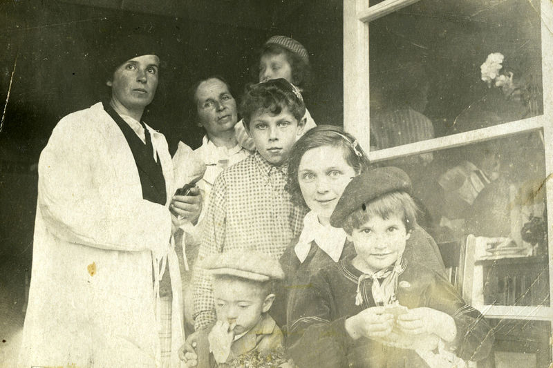 Костя Нечаев (в центре) с мамой, сестрами и племянниками. 1936 г. В том же 1933 году семья Нечаевых переехала из Мичуринска в Москву, где уже жили, учились и работали старшие сестры и братья Константина (они стали крупными инженерами).