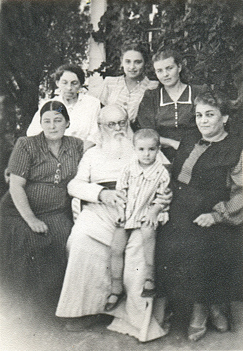 В Алуште. Сидят: Вера Владимировна Прозоровская, святитель Лука с правнучкой Ириной на коленях, дочь святителя Елена. Стоят: личный секретарь святителя Луки Евгения Павловна Лейкфельд, Майя Прозоровская, внучка святителя Луки Анна (дочь Елены). 1950 г.