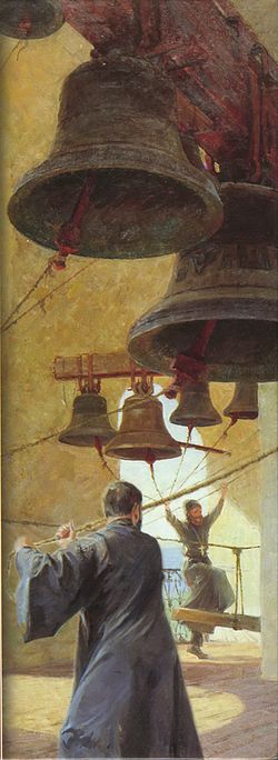 | Фрагмент картины В.Г. Никонова «Звонница». Холст, масло. Б.г. |