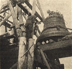 На четырнадцатый год существования у стен монастыря временной деревянной звонницы, построенной специально для колокола «Большого», звонари стали замечать, что при раскачивании колокольного языка в такт ему стала заметно раскачиваться и поскрипывать сама звонница. Настоятель монастыря архимандрит Тихон (Руднев) поручил произвести тщательный осмотр ее несущих деревянных опор. Результат проверки оказался неутешительным: столбы изрядно прогнили и грозили вот-вот обрушиться. По совету епархиального архитектора, под балки, на которых висел колокол, были подведены дополнительные деревянные подпорки, но и с ними во время звона ощущалось значительное колебание всей звонильной конструкции.