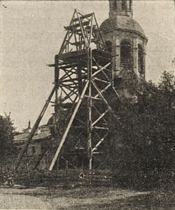 | Строительные леса, возведенные рядом с колокольней Н.В. Подчиненновым. Фото 1907 г. |
