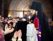 После богослужения Блаженнейший митрополит Владимир обратился к новохиротонисанному епископу со словом напутствия и вручил ему архиерейский жезл. Затем епископ Филарет по традиции преподал верующим первое архипастырское благословение.